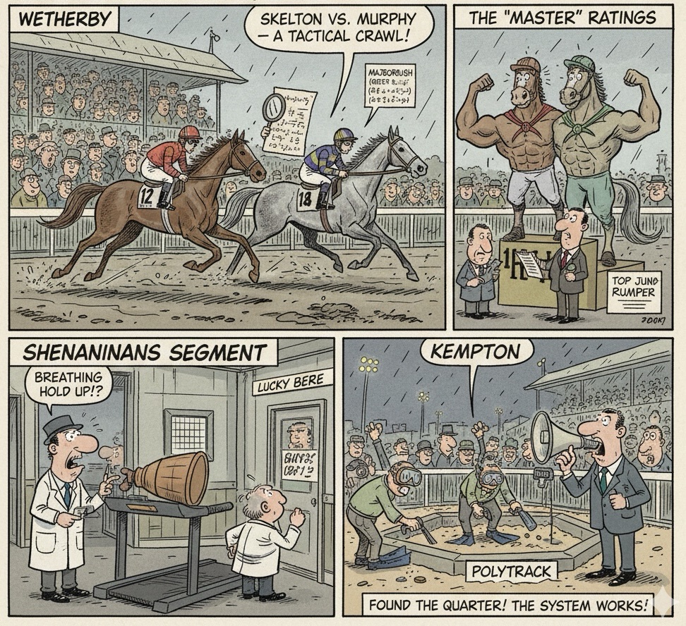 Wednesday (Feb 11th) shifts the circus to Hereford, Wetherby, and the floodlit artificial “sand-pits” of Kempton. If you’re looking for style over substance—or ideally both—here’s where the “shenanigans” are hiding.