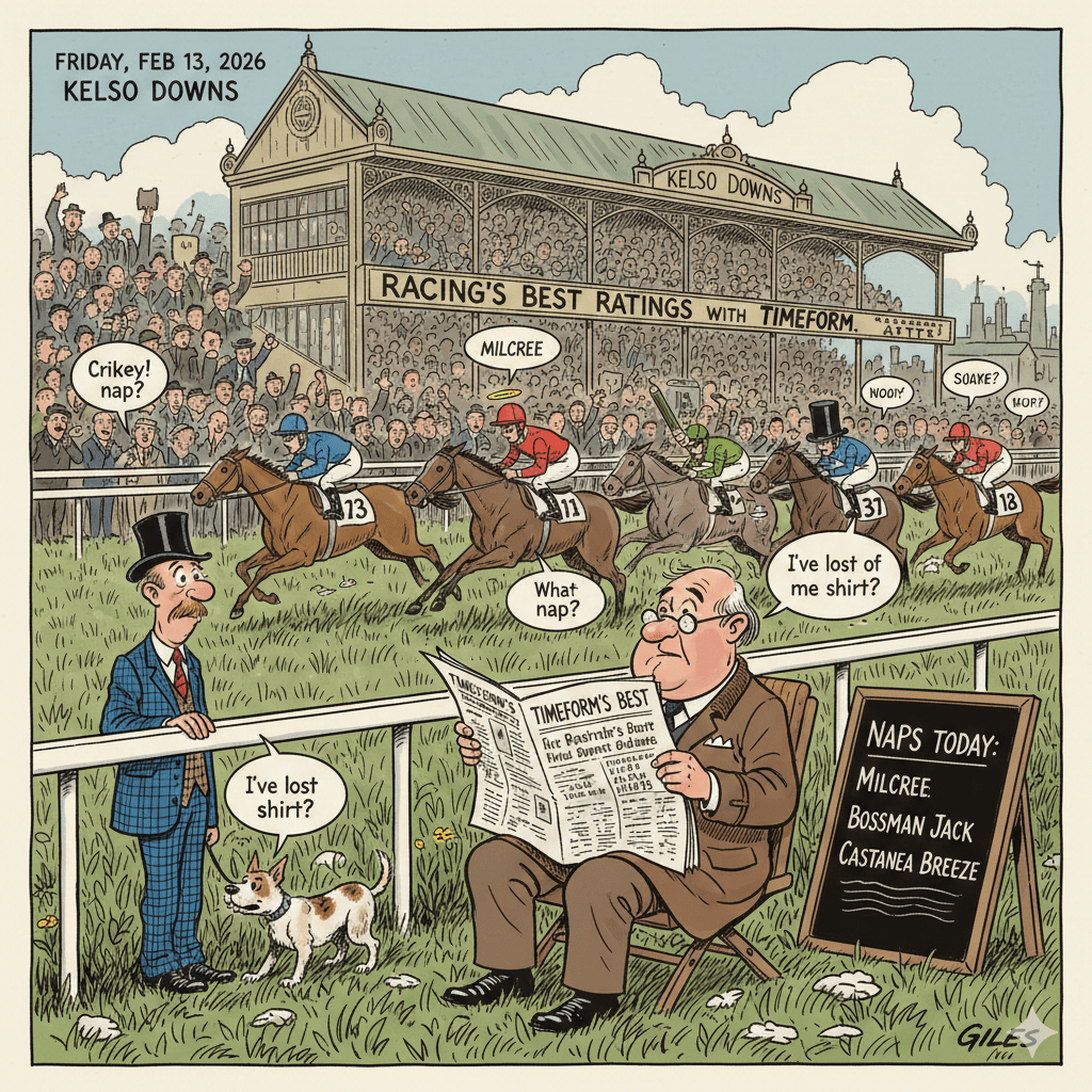 For tomorrow, Friday, February 13, 2026, Timeform and major analysts have highlighted several key runners across the UK cards. The standout Timeform-sponsored race is at Kelso, which naturally features some of their highest-rated selections of the day.