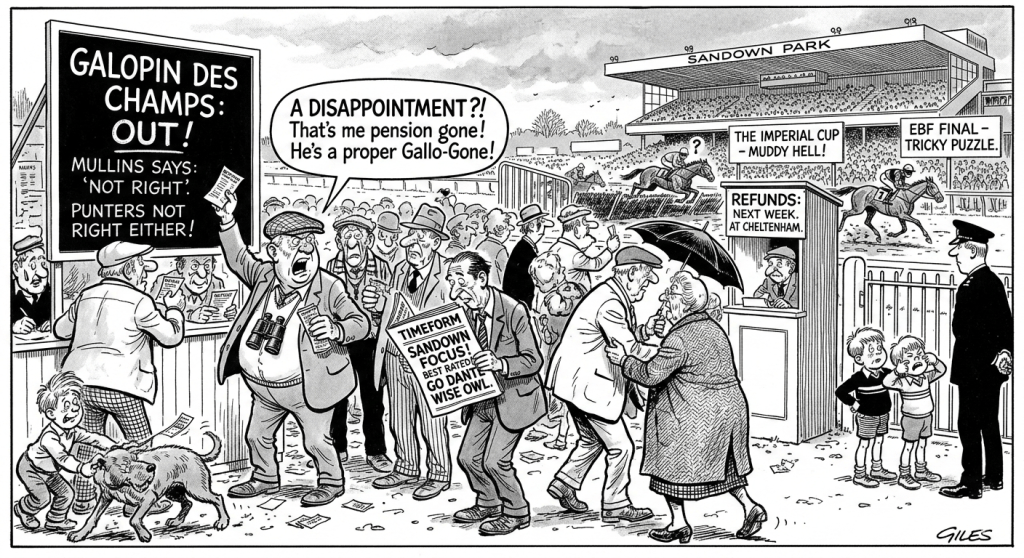 It’s Saturday at Sandown, the traditional “curtain-raiser” for the Cheltenham madness that begins next week. The ground is soft, the nerves are high, and the bookies are already rubbing their hands together after a bombshell from Closutton.
