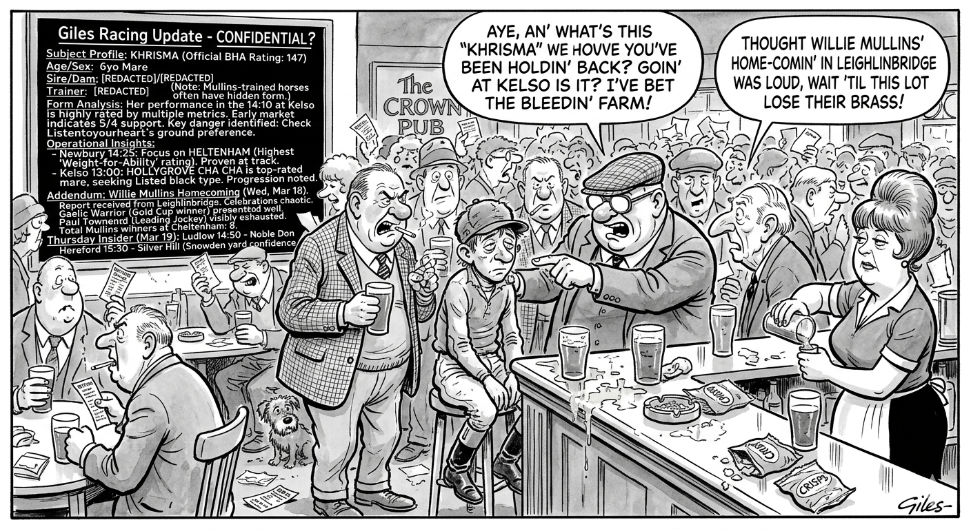 • The Northern Star: Hollygrove Cha Cha (13:00 Kelso) is the highest-rated mare on the card. She’s been on a steeper upward trajectory than a Silicon Valley startup, and the Listed status of this race means she’s here for the “Black Type,” not just the scenery.