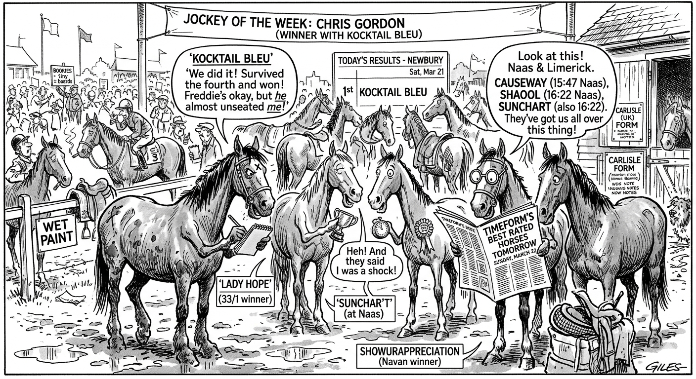 For Sunday, March 22, the action moves to Naas (Ireland), Limerick (Ireland), and Carlisle (UK). Here are the horses carrying the strongest Timeform backing:
