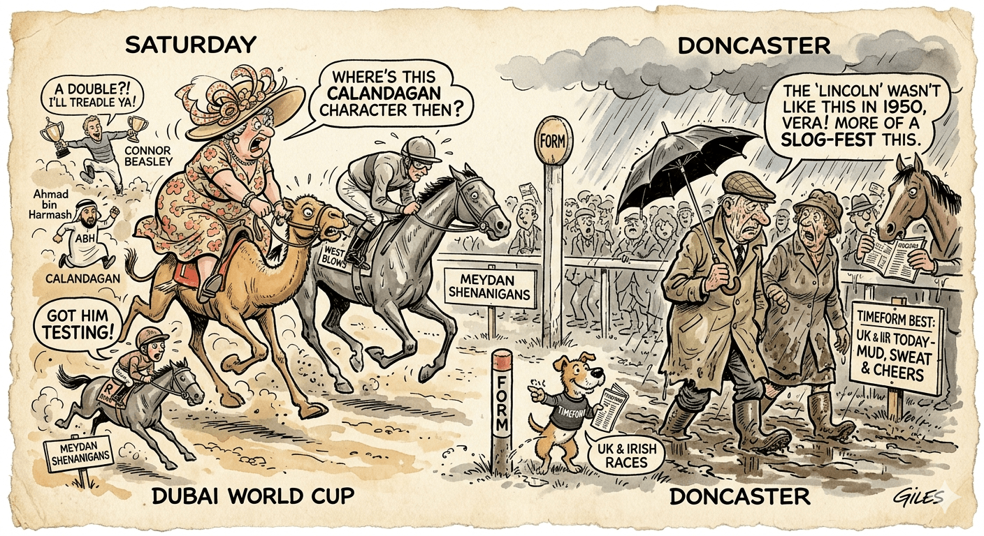 The racing world spent yesterday with its head in the sand, specifically the pristine, oil-funded variety in Dubai, while simultaneously keeping a muddy boot firmly planted in the South Yorkshire turf. It was a day of “almosts,” absolute “certainties,” and a jockey who appears to have found the keys to the desert.