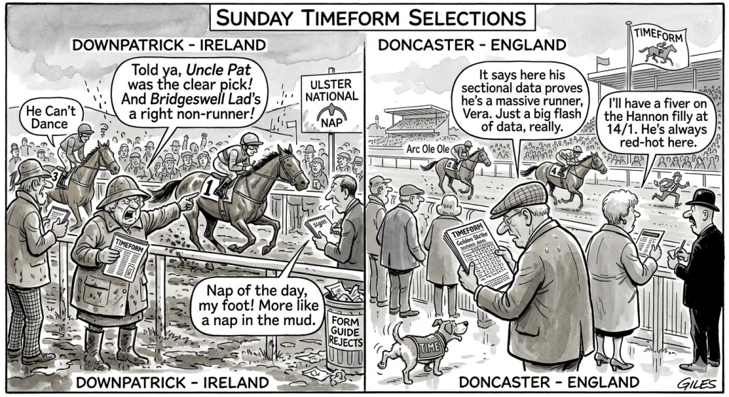 Golden Strike (14:55 Doncaster): Listed as a Timeform “Horse In Focus.” Strong sectional data from his previous runs suggests he’s a massive runner for the Fahey yard today.