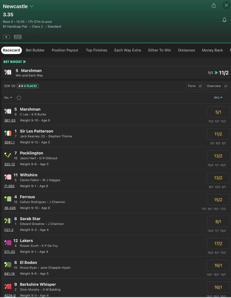 Timeform and several major tipsters (including Jason Weaver) have highlighted this horse as the one to beat in the Marathon. It has a high strike rate at Newcastle and strong pace hints suggesting it will suit the front-running style often rewarded on this track.