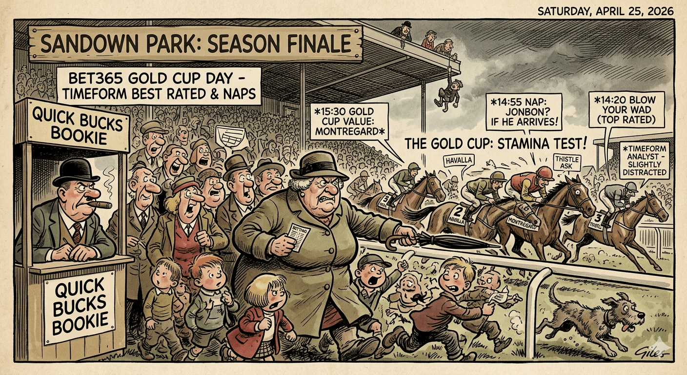 The Each-Way Value: Montregard (15:30) In a wide-open Gold Cup, Timeform notes his steady progression. He looks well-handicapped and likely to relish the stamina test.