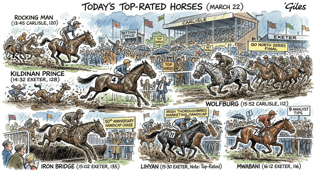 For Sunday, March 22, the action moves to Naas (Ireland), Limerick (Ireland), and Carlisle (UK). Here are the horses carrying the strongest Timeform backing: